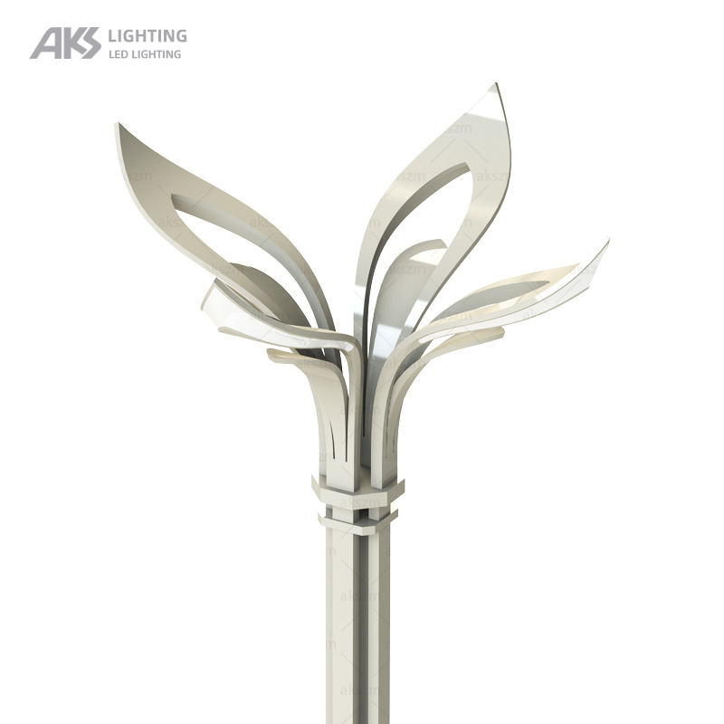 The cross-section of the vertical pole can be polygonal (equilateral octagonal, unequal octagonal, twelve-sided) or cylindrical, or it can be molded as required with special-shaped cold-drawn rods, 6-8m high and 5-12mm wall thickness.